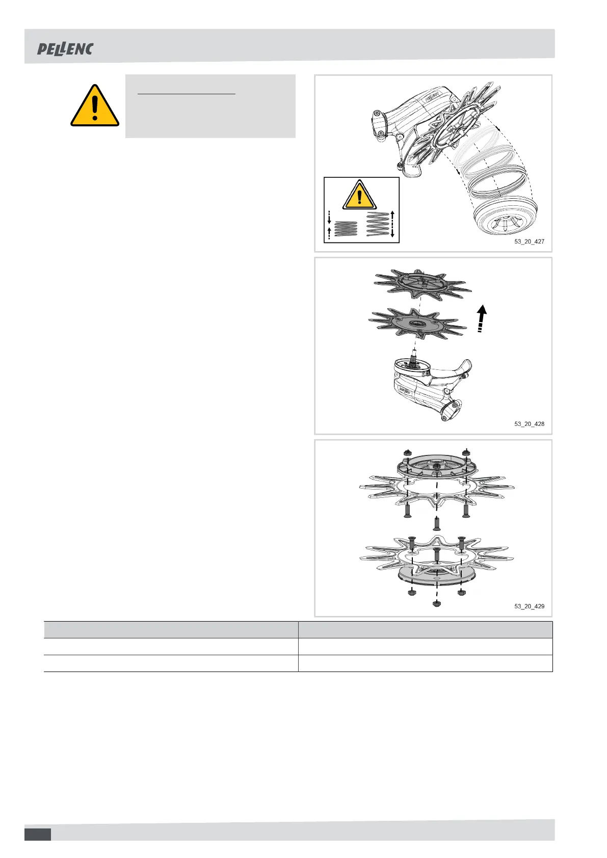 2. Using a Torx 27 screwdriver, fit the 3 screws and 3 nuts to lock the position of the blade on its support.