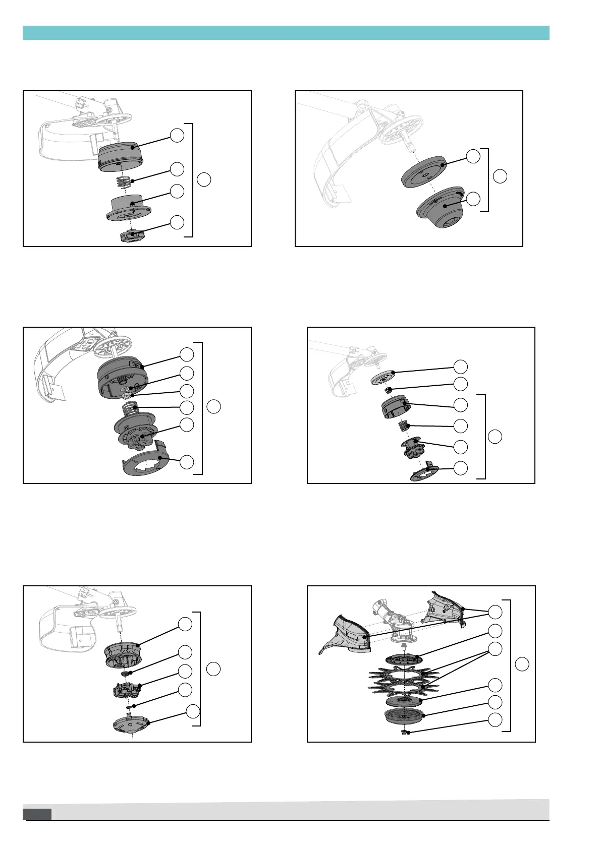 pellenc EXCELION 2000 - Cutting Head Parts: Roll Cut; Cutting Head Parts: Blade Cut; Cutting Head Parts: Tap Cut; Cutting Head Parts: Tap Cut 2