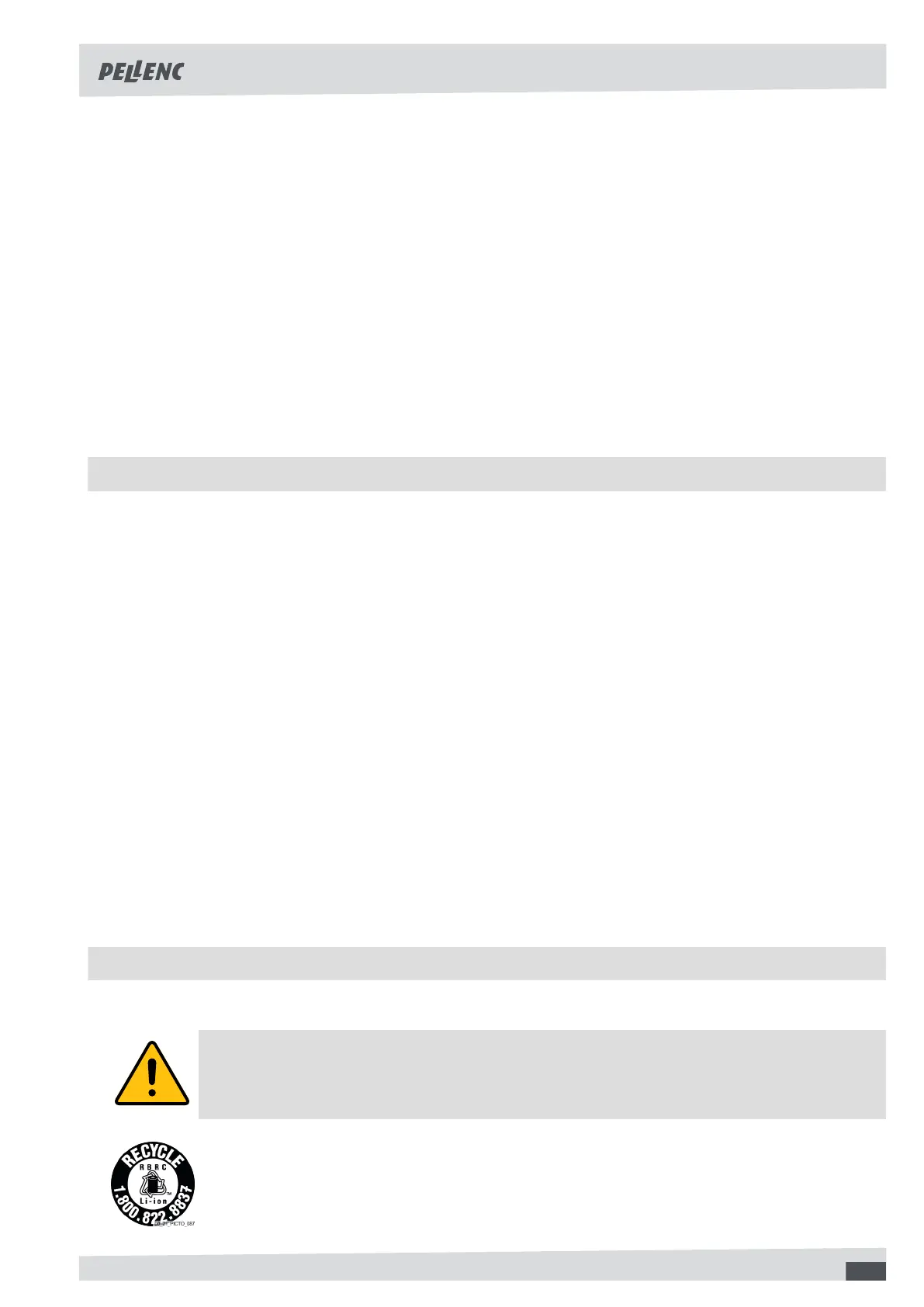 7. Only recharge using the "PELLENC" charger indicated by the manufacturer. A charger adapted to one type of