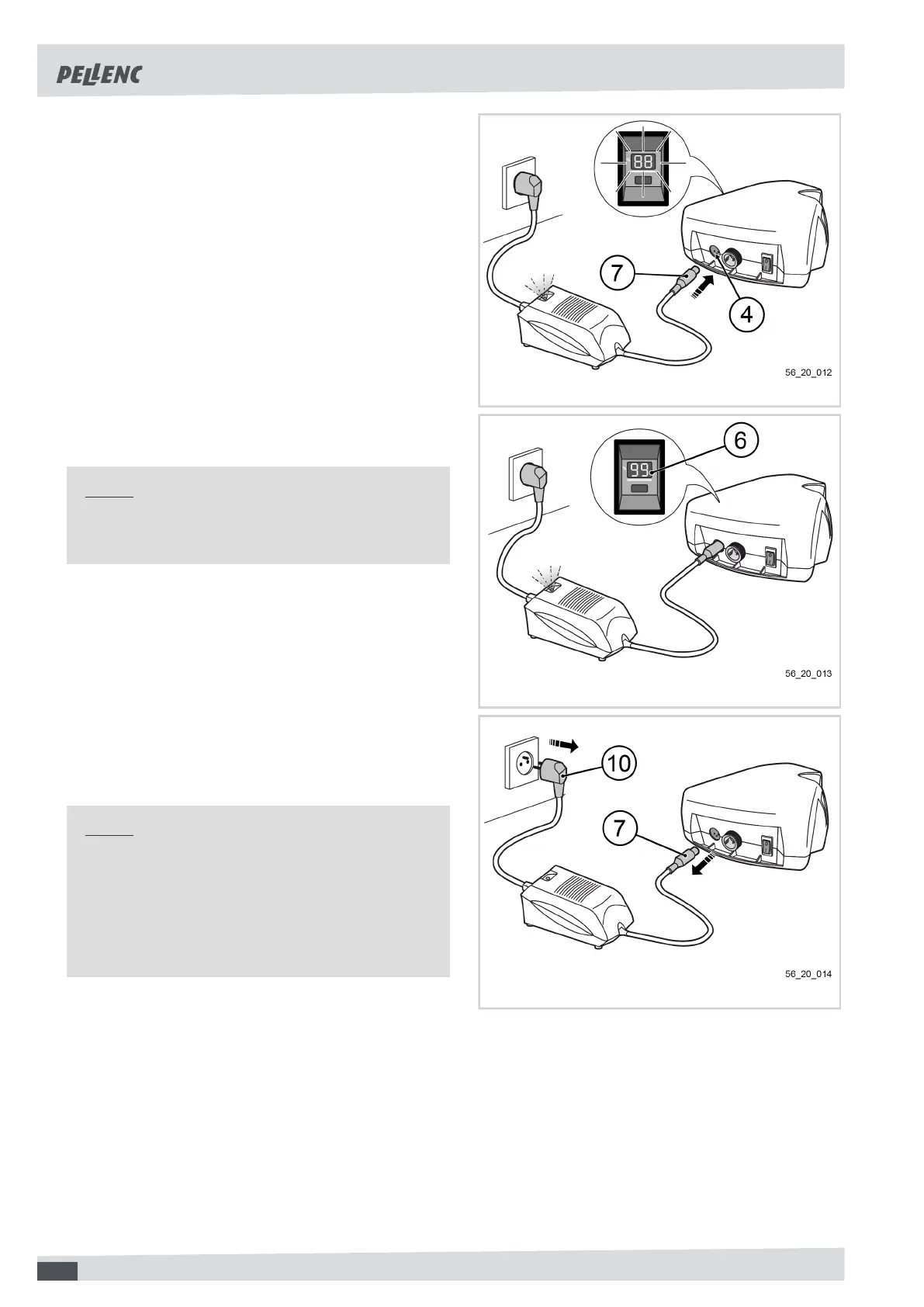 4. Connect the charging cord (7) to the battery's charg-