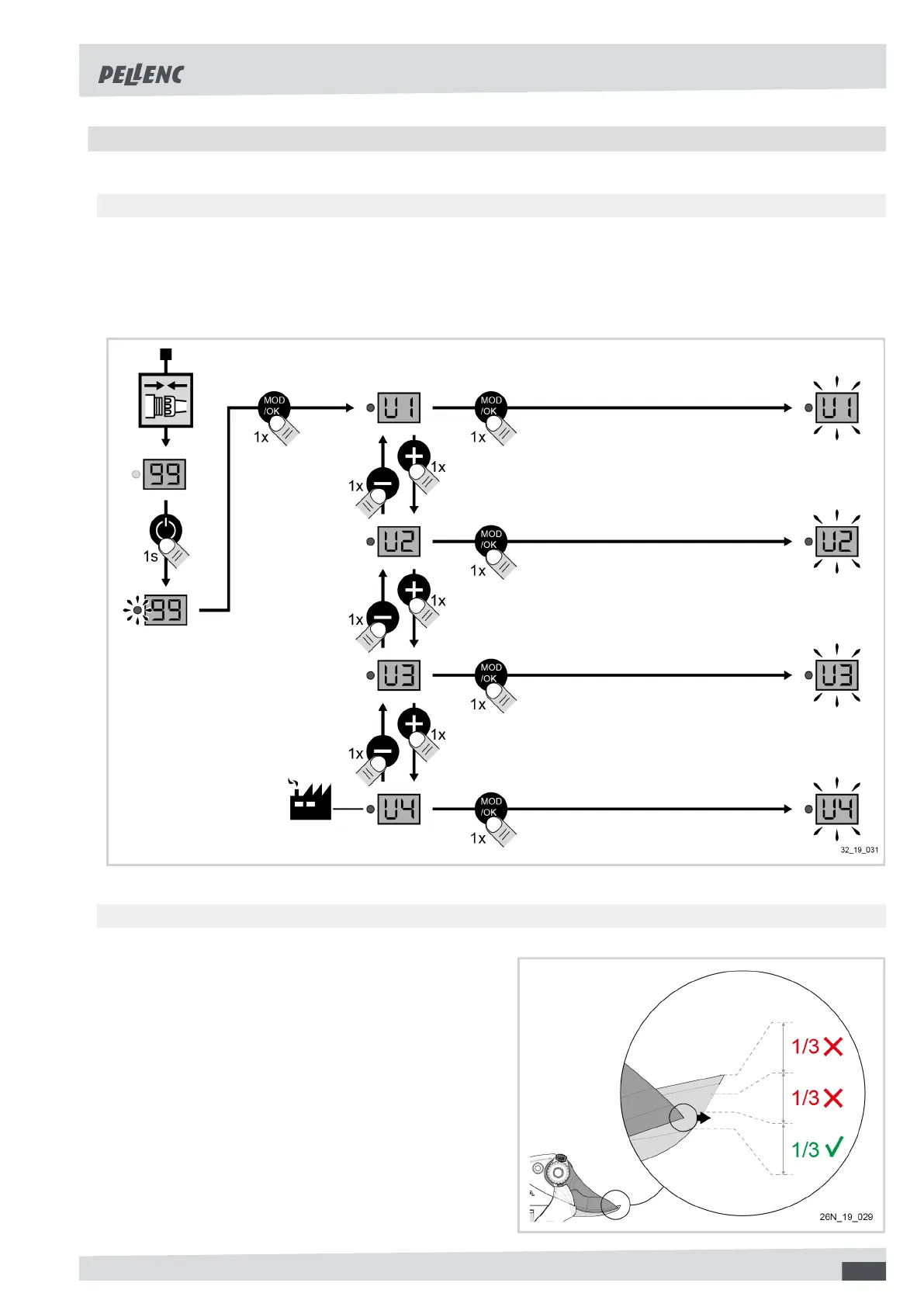 3. Choose modes U1, U2, U3 or U4 by pressing + or -,