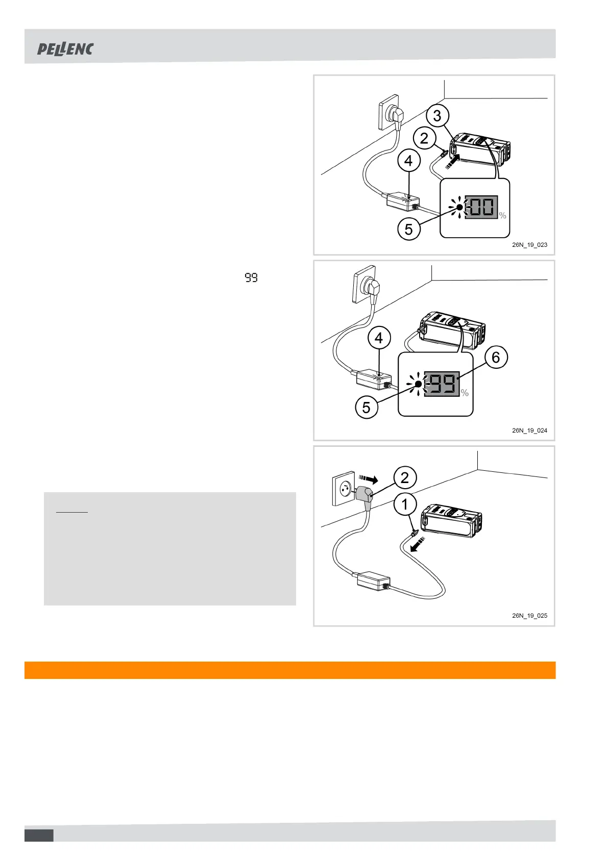 When the gauge display (6) flashes, the battery is charg-