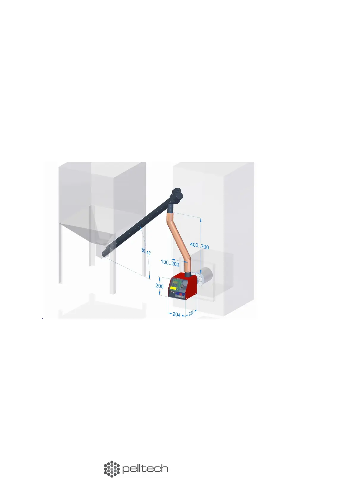 strictly as described below. The vertical distance between auger outlet and burner inlet must be in