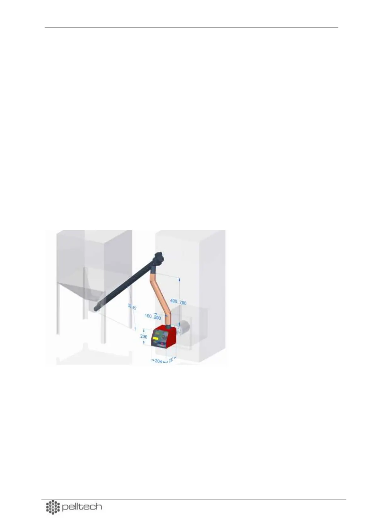 The vertical distance between the output of external auger and burner has to be 400 – 700 mm.