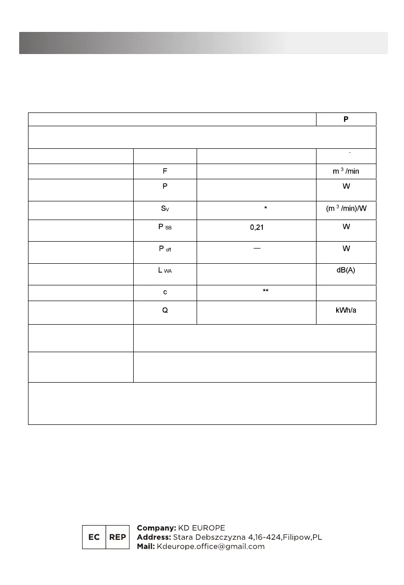 * El valor de servicio calculado al caudal máximo del ventilador dividido por la potencia de entrada del