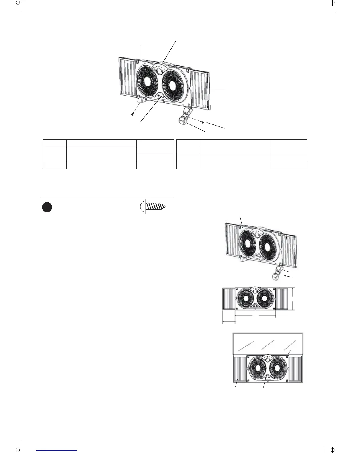inferior de la ventana detrás del reborde de la carcasa del ventilador.