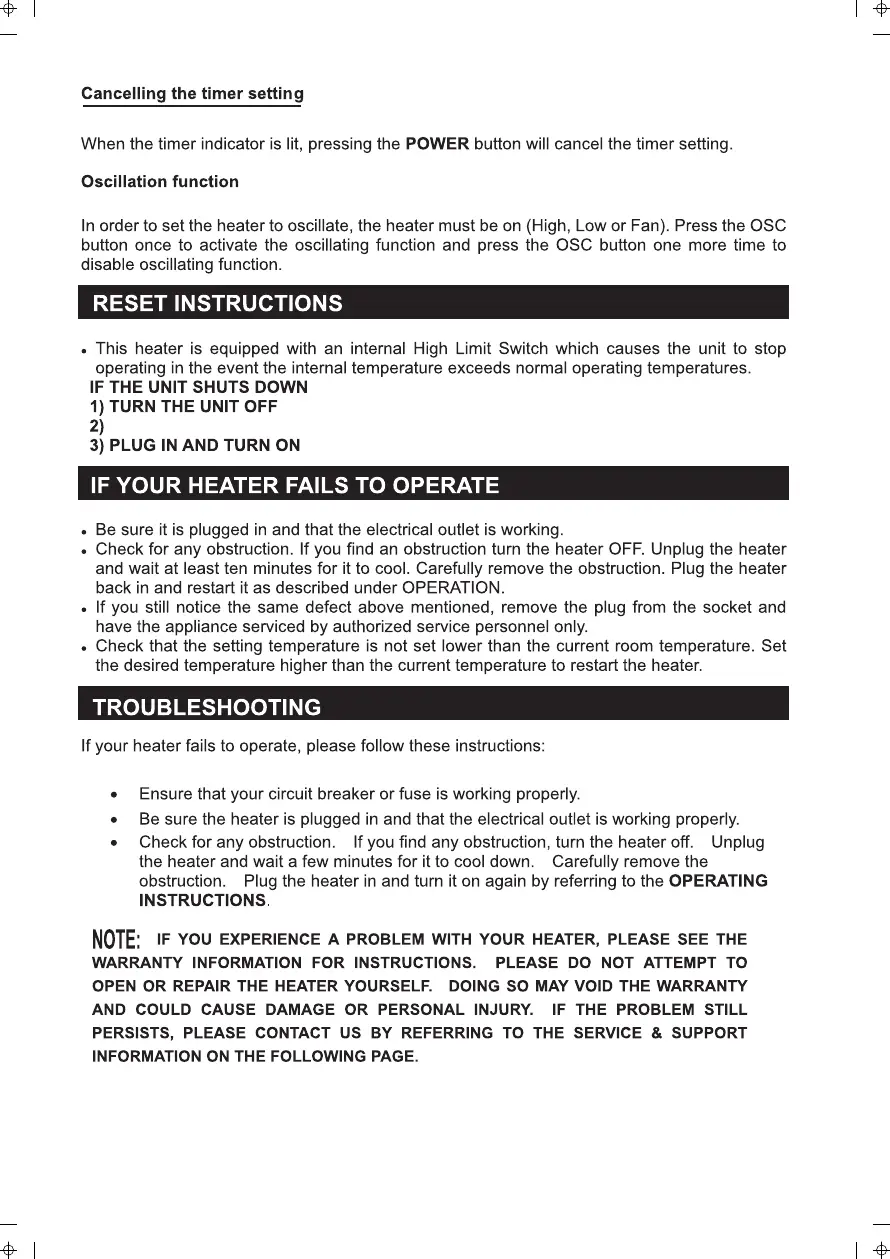 Pelonis HF-0063 - Advanced Operation and Troubleshooting; Oscillation and Timer Cancellation; Reset and Failure Troubleshooting