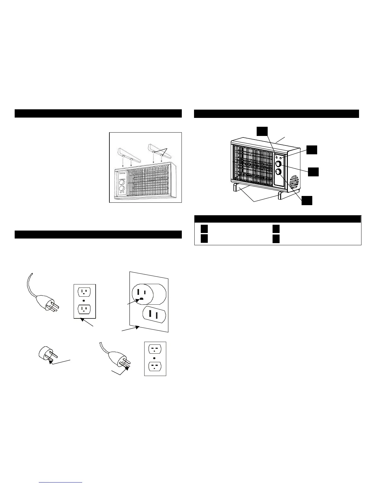 PRECAUCIÓN: Riesgo de incendio - No utilice el calentador sin los pies ensamblados. Utilice el
