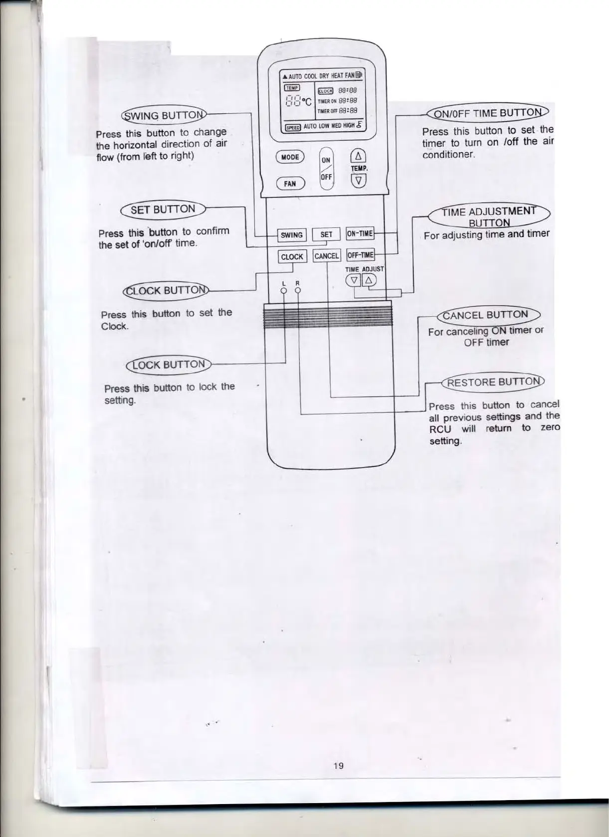Pelonis KCD25Y1 - RCU Operating Panel Display; Panel Indicators and Functions