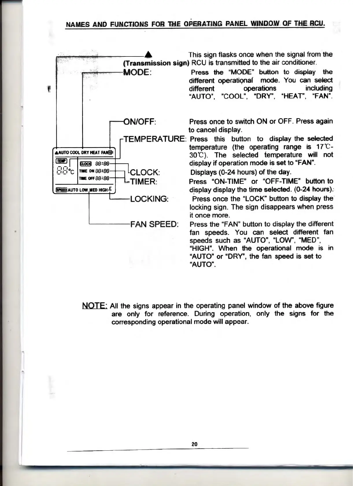 Pelonis KCD25Y1 - RCU Operating Instructions; Clock Setting and Auto Operation