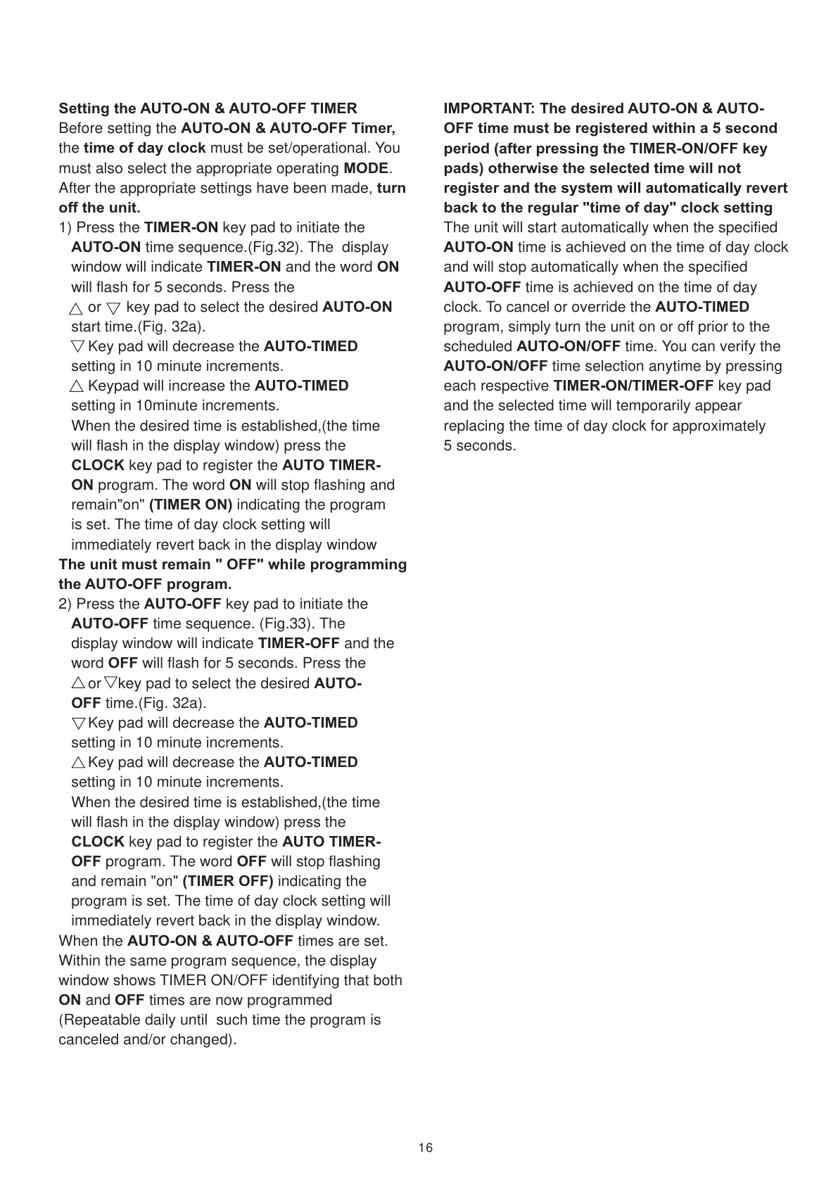 Setting the AUTO-ON & AUTO-OFF TIMER
