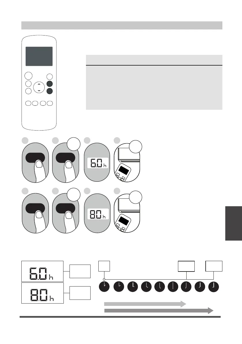 Example: Setting the unit to turn on after 6 hours, operate for 2 hours, then turn off