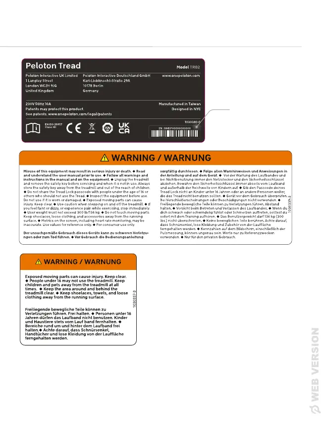 Familiarize yourself with all warnings on the Tread before use.