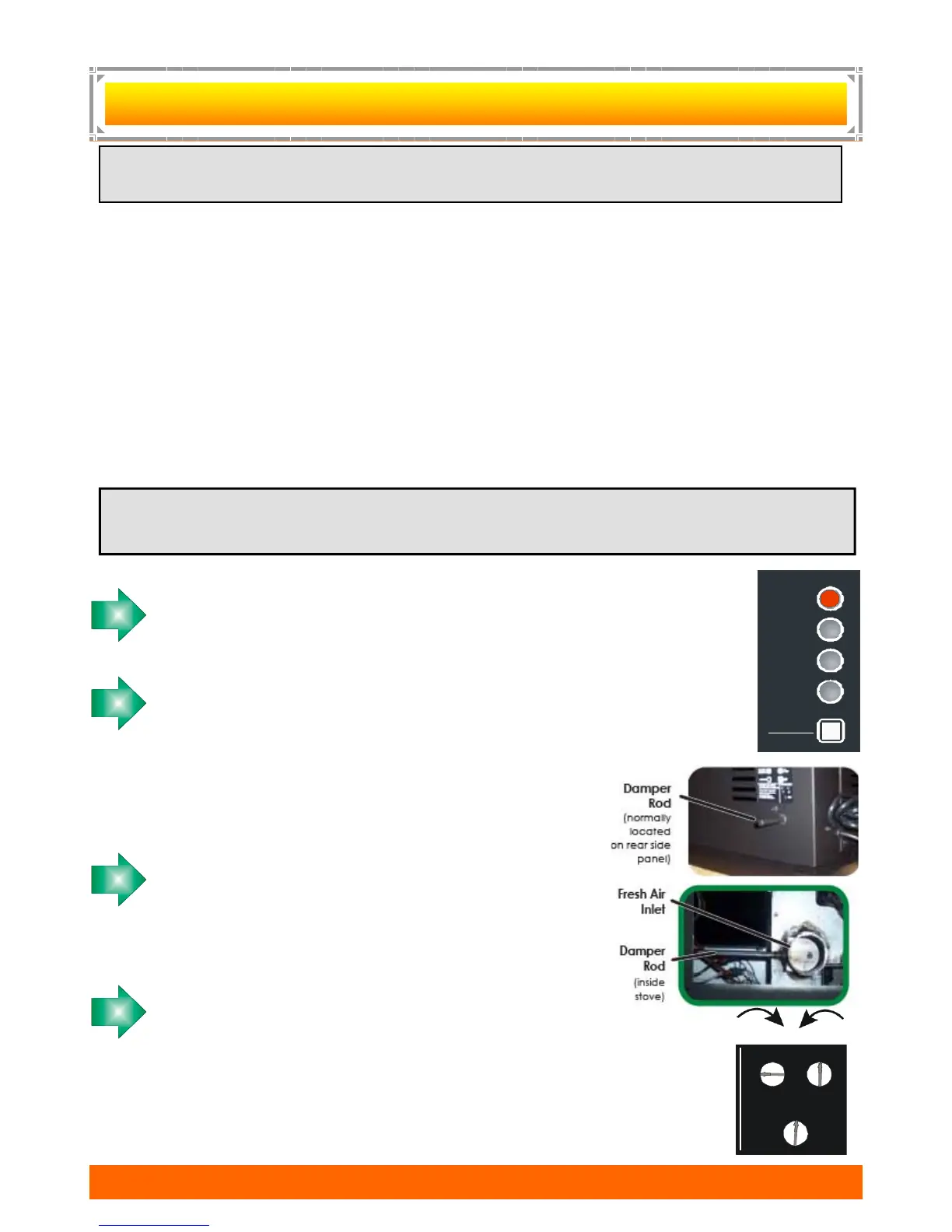 Continue opening the air inlet damper as needed to obtain a fire that is brisk