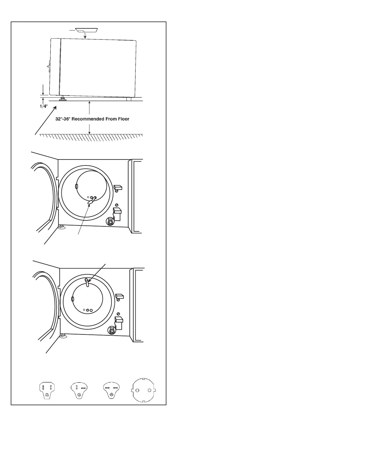 Adjust feet (A) so that front of unit is 1/4” higher than rear. If front