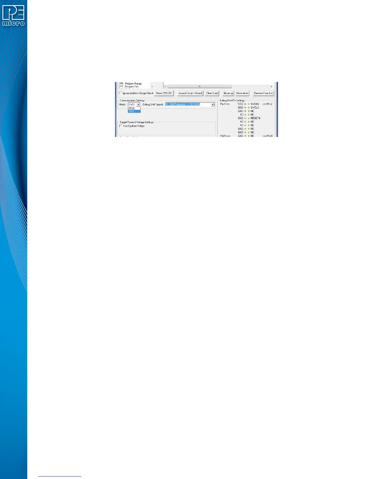 SWD Mode is selected from the “Communication Mode” drop-down box in the Cyclone Image