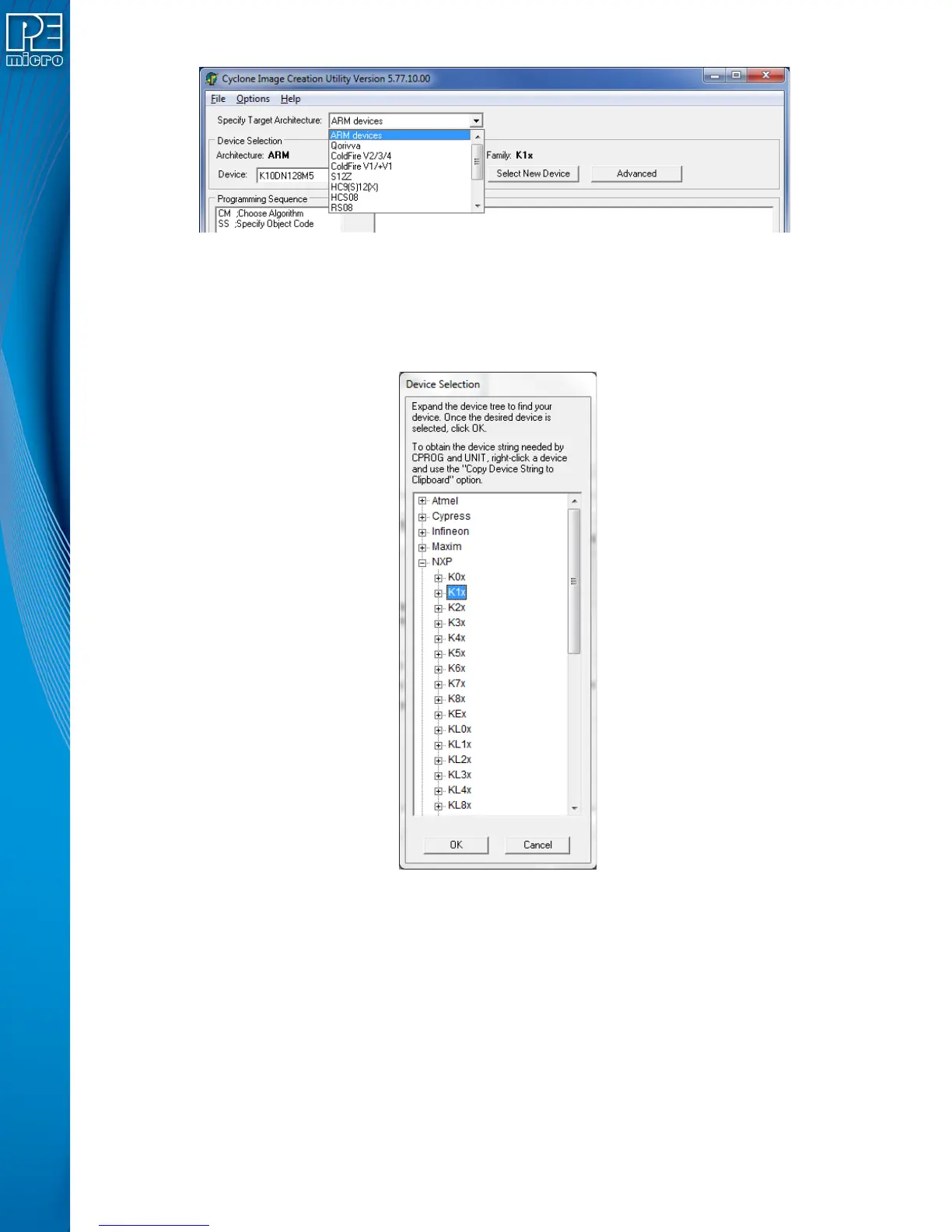 supported ARM Cortex devices. The user may select the appropriate target architecture by clicking