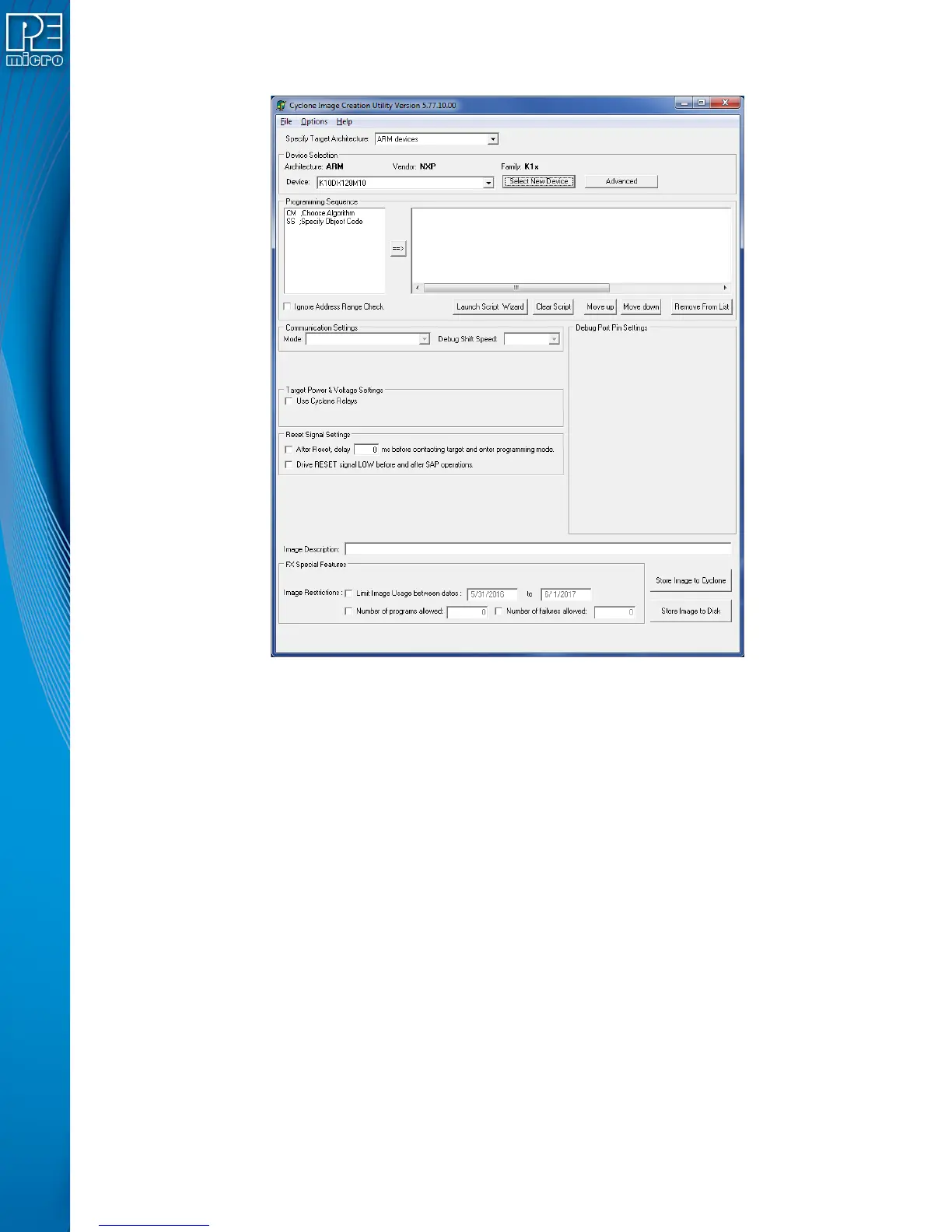 To specify the programming algorithm for the target, double-click on the Choose Algorithm (CM)