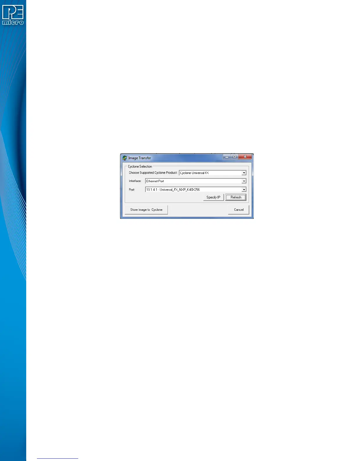 “Store Image to Cyclone” allows the current configuration to be programmed into the Cyclone. The