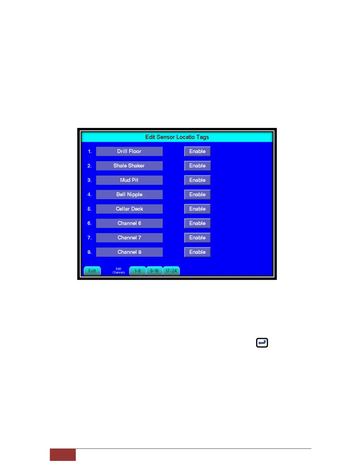 This option allows the user to assign location tags to each sensor / channel and Enable