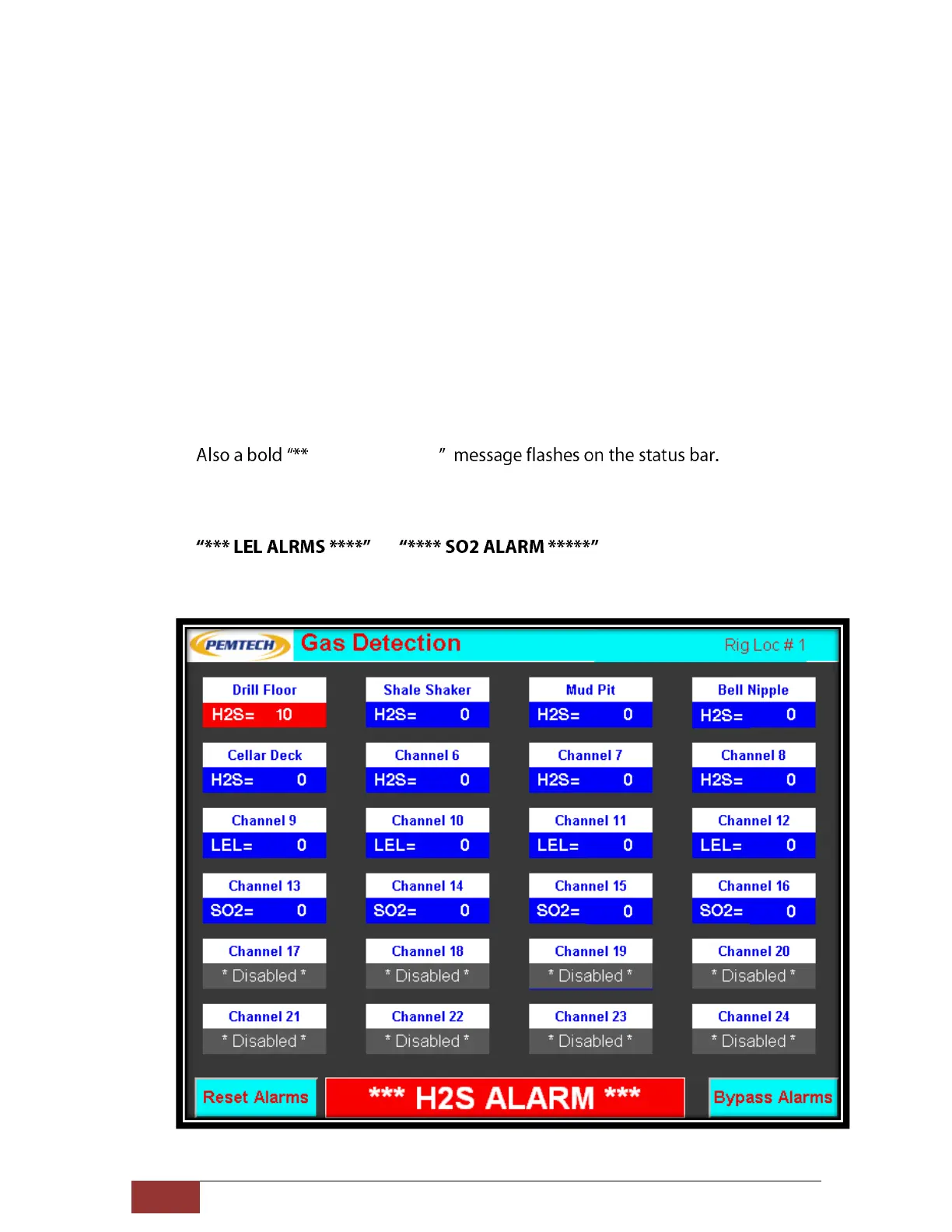 For an LEL or any other gas type alarm similar sensor data is displayed and bold