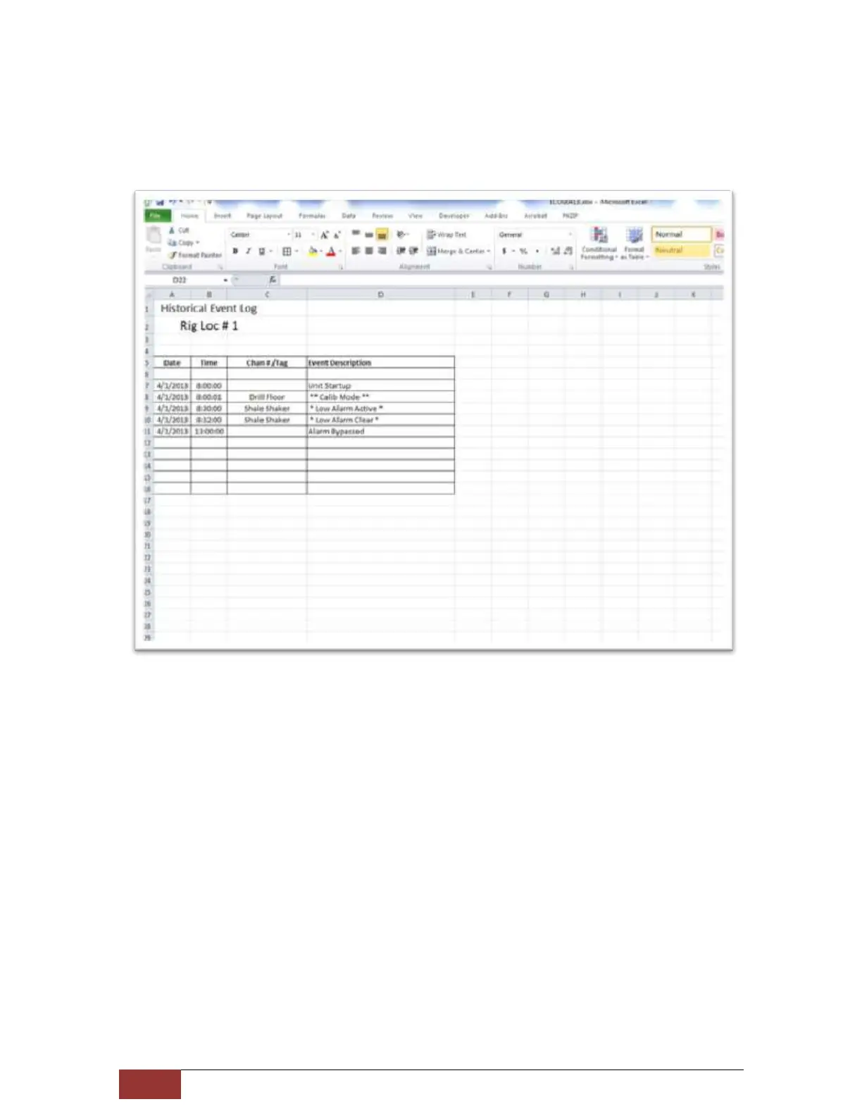 Figure 7. Sample Historical Event in Excel