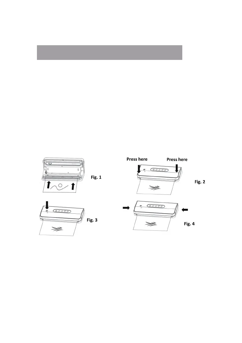 1. Put the food into the special vacuum packaging bag, allow ing at least 3 inche s of space between