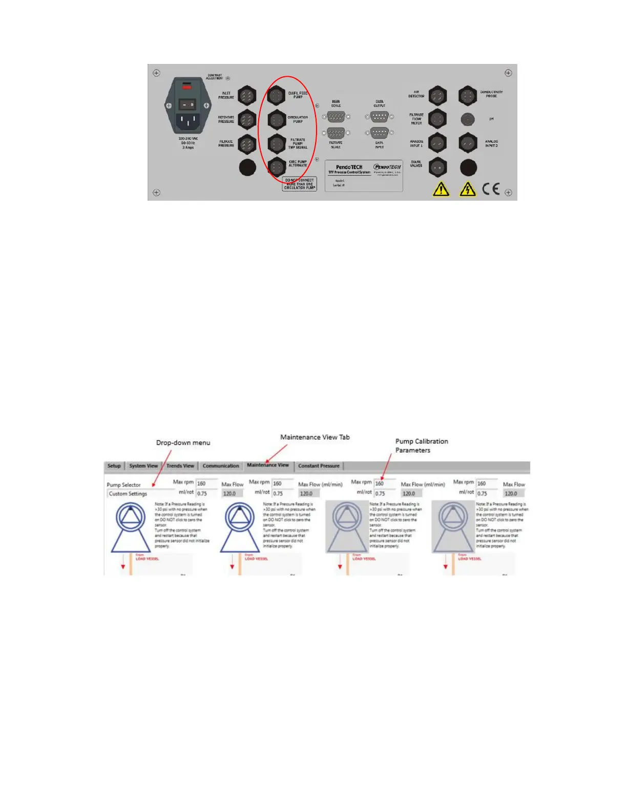 mL/rotation. These parameters must be input on the “Maintenance View” tab of the control system