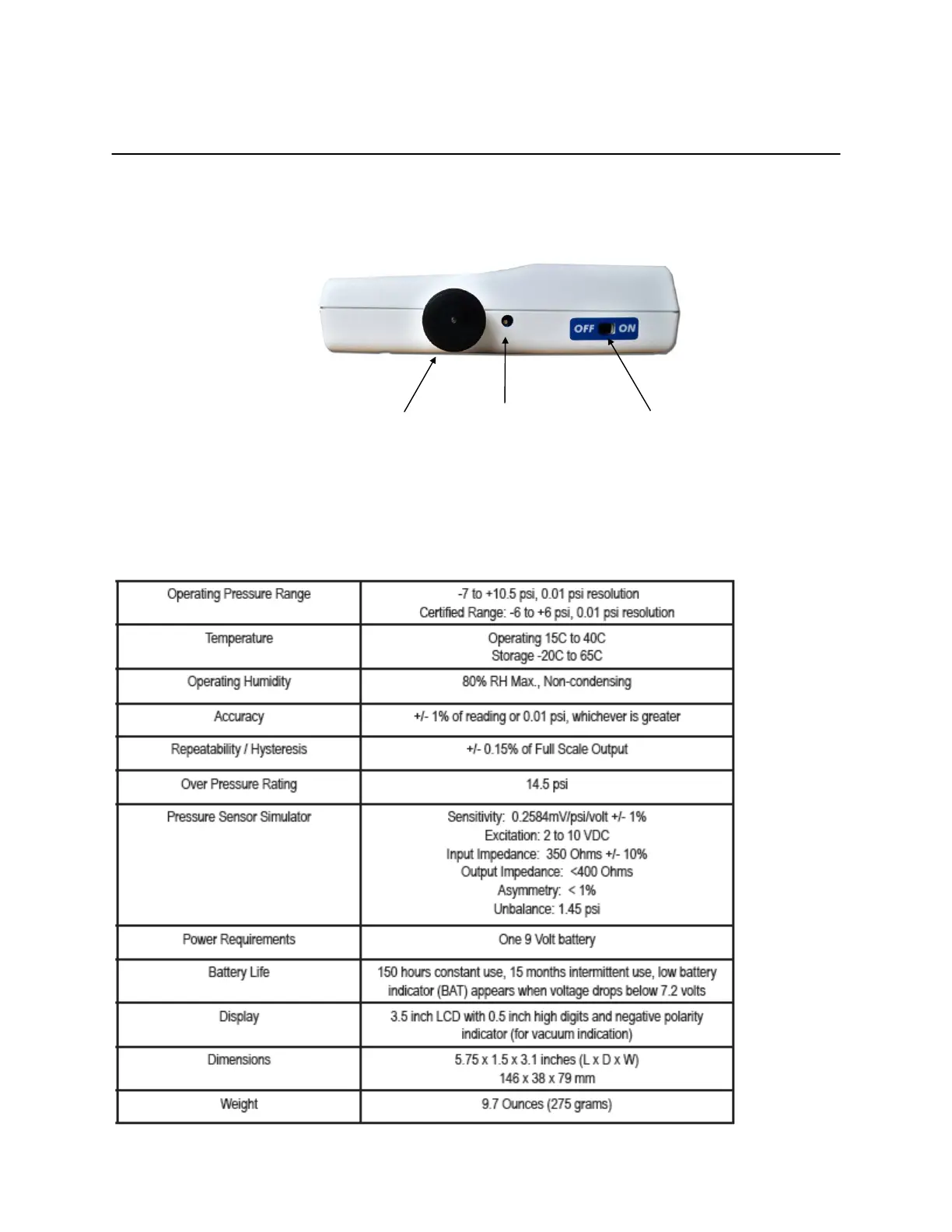 PendoTECH PressureChecker PDKT-650-950 - Specifications