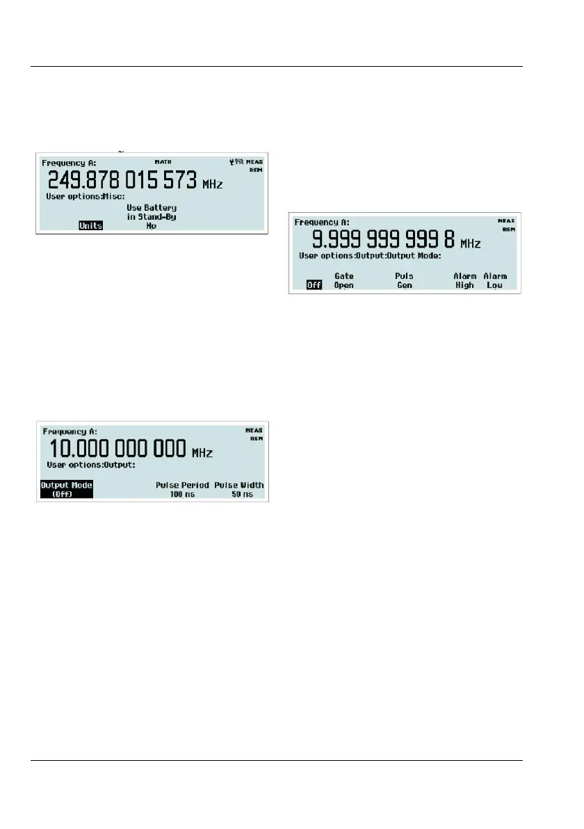 Press the softkey Output to open the submenu