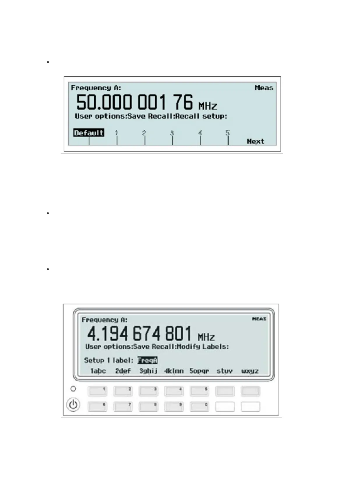 Select a memory position to which you want to assign a label. See the descriptions under Save/Recall setup above.
