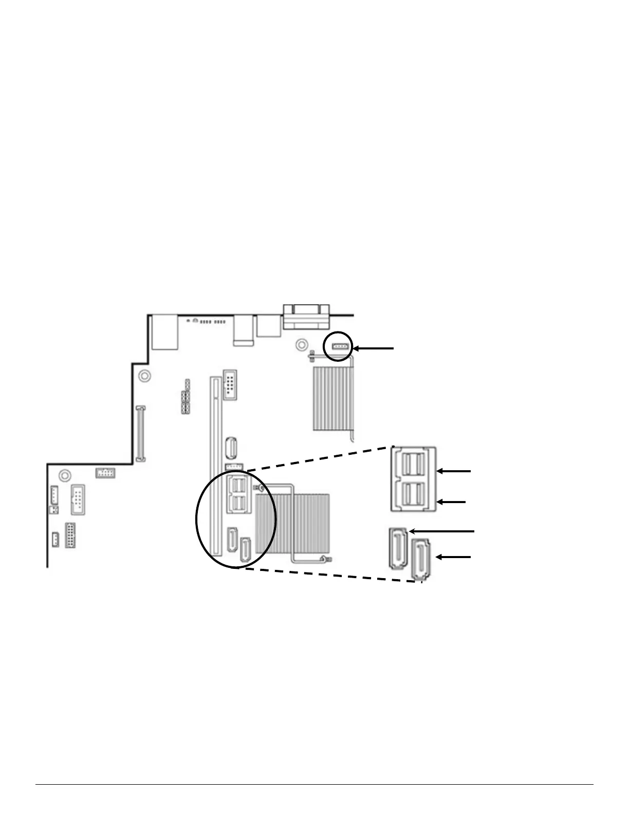 • Four SATA ports from the Mini-SAS HD (SFF-8643) connector labeled “sSATA Ports 0-3” on the