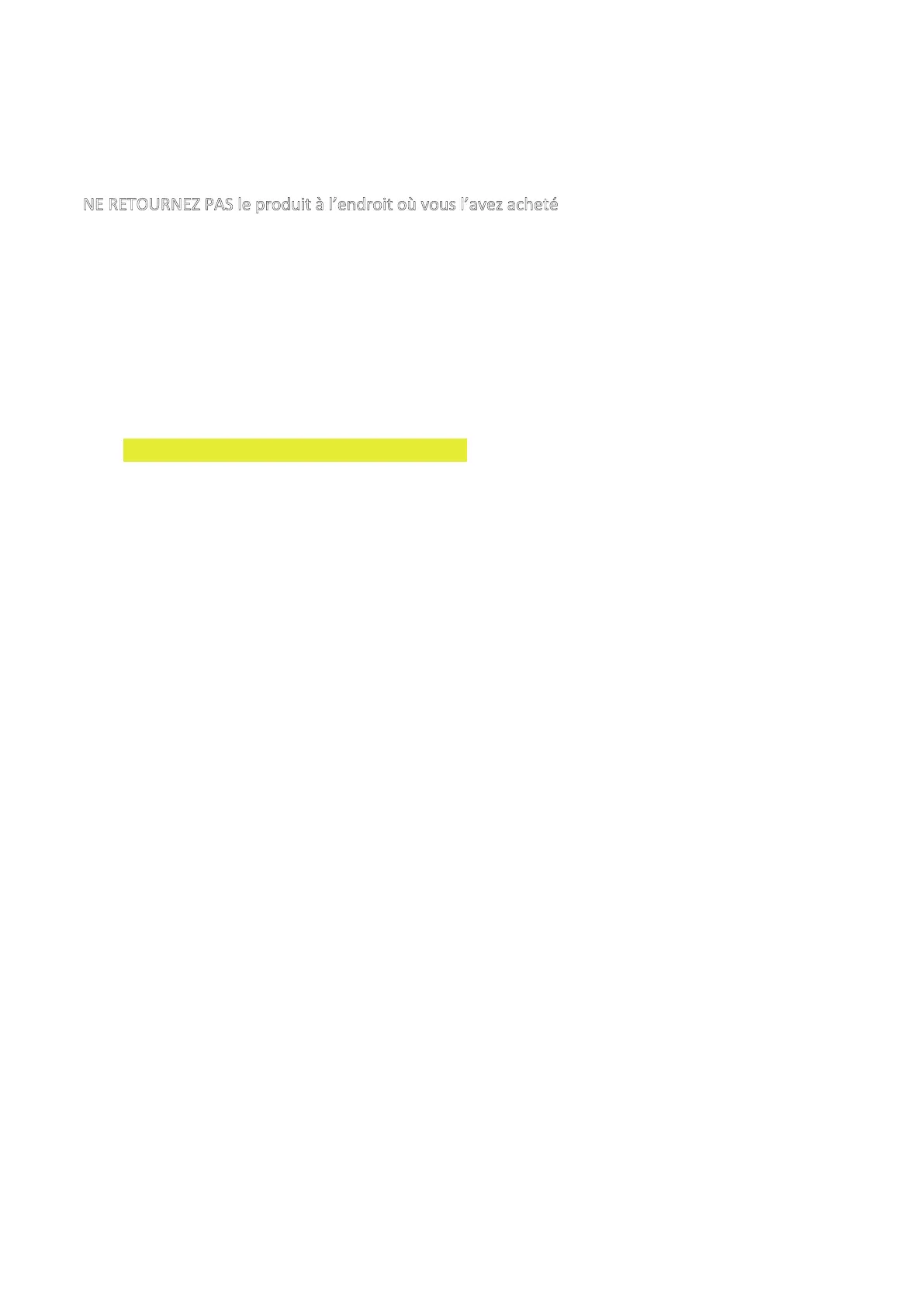 NE RETOURNEZ PAS le produit à l’endroit où vous l’avez acheté
