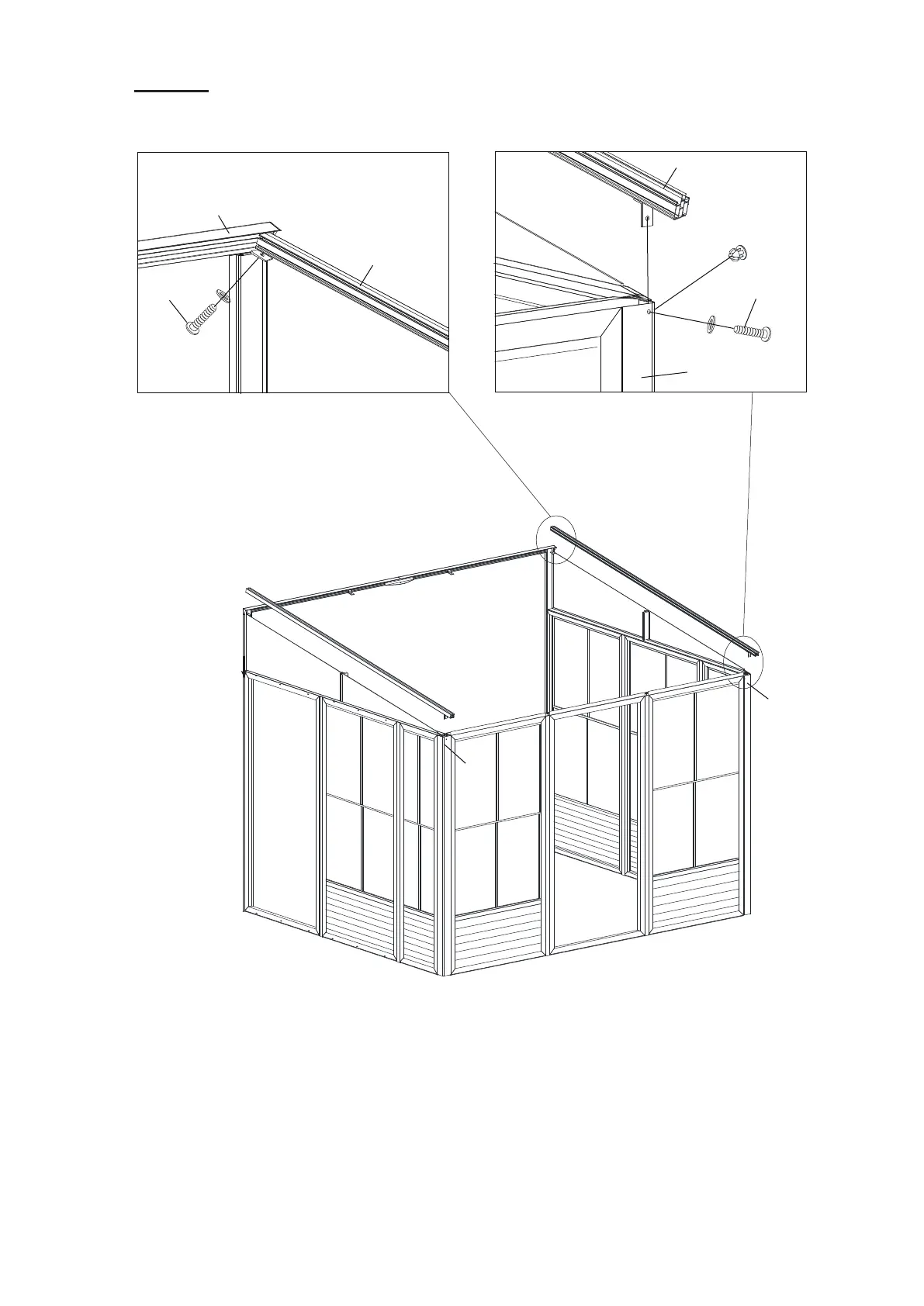 9. Set Right Side Rafter (F1) over the last bracket then secure to Corner Connector (K-3) and
