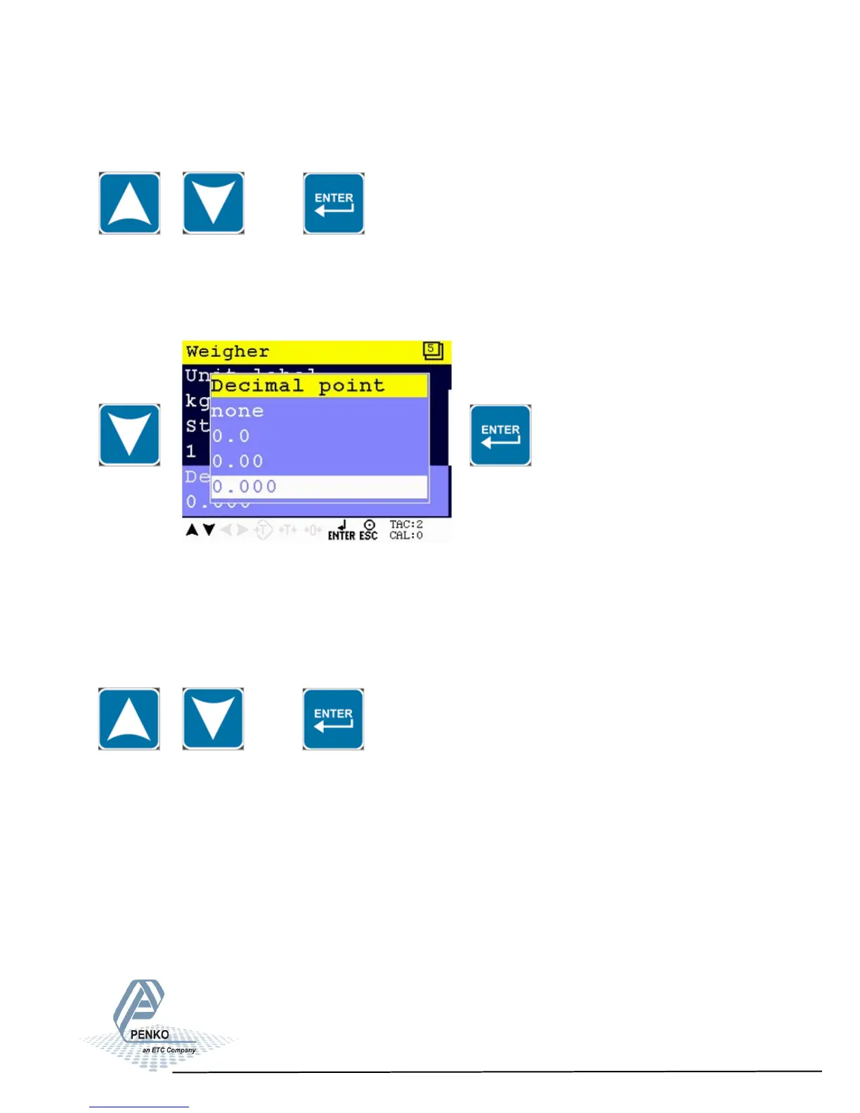 Use the UP and DOWN key to select the correct decimal point and confirm with