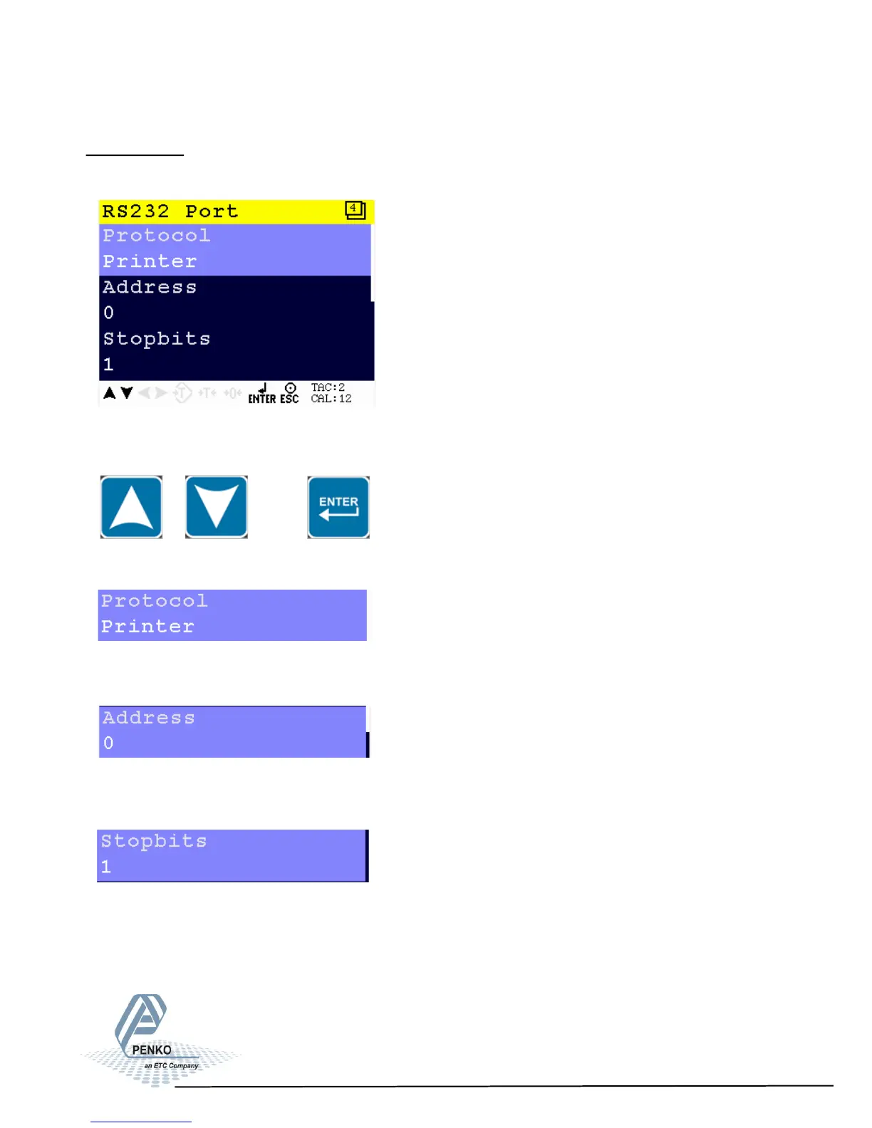 Scroll through the RS232 Port menu using the UP or DOWN key. Press Enter for