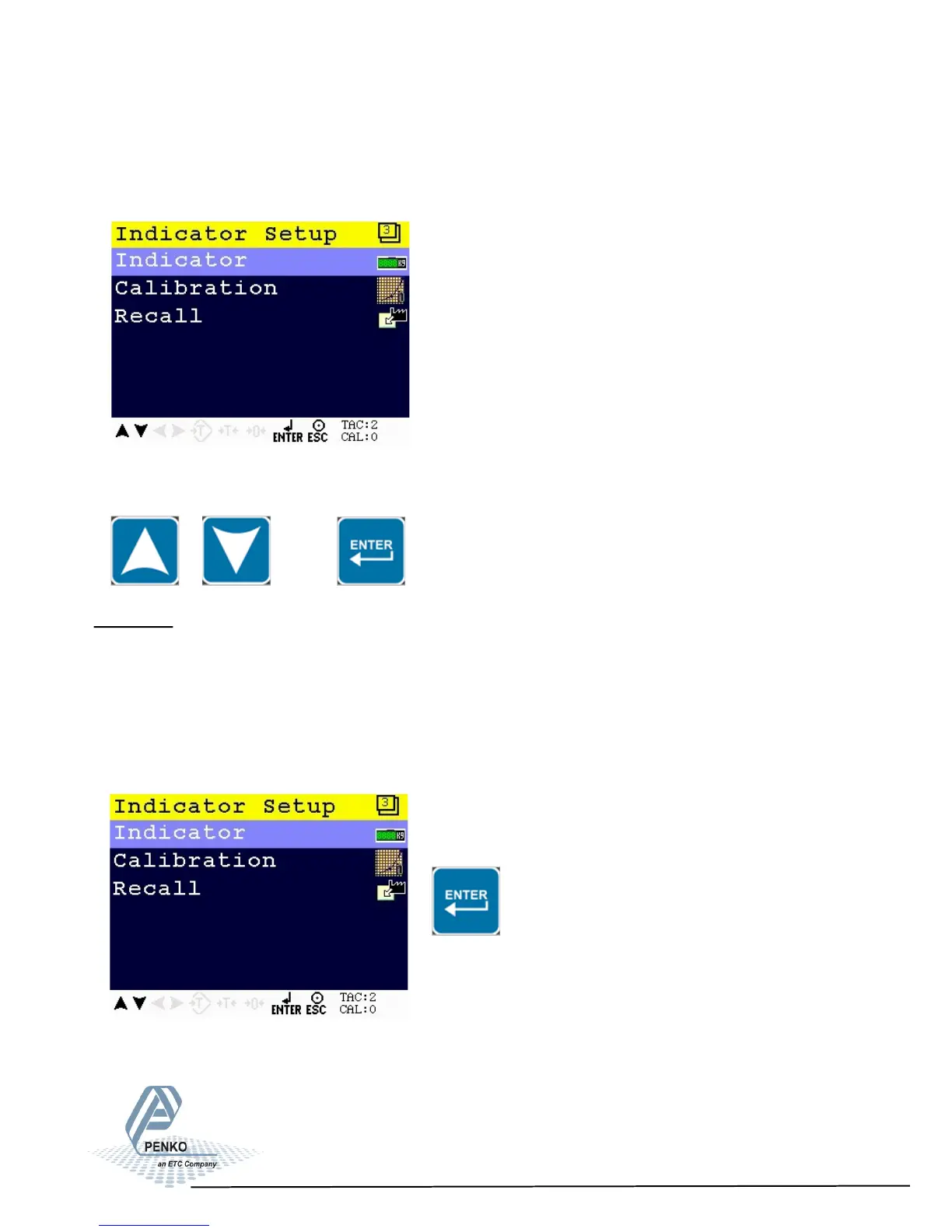 The Indicator Setup options are Indicator, Calibration and Recall.