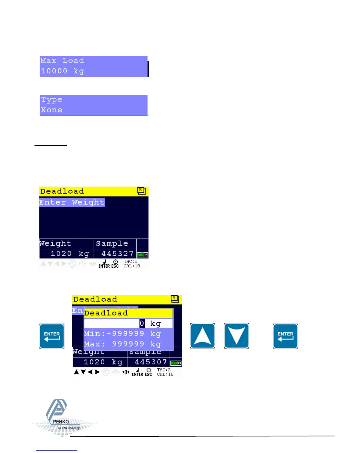 Make sure the weigher is empty. Press Enter to enter weight. Set the dead-