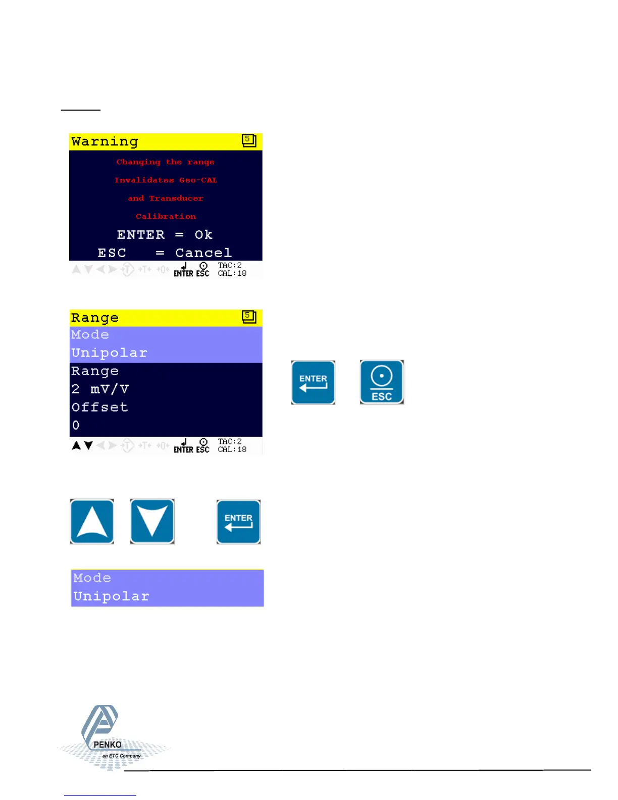 Enter the Range menu by pressing Enter of leave the menu by pressing ESC.