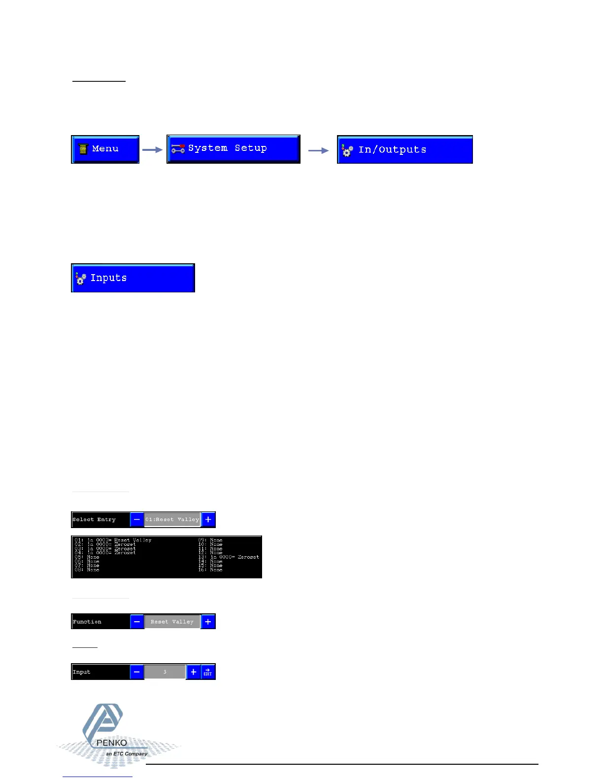 In this menu its possible to setup the Inputs, Outputs and analog output for the different
