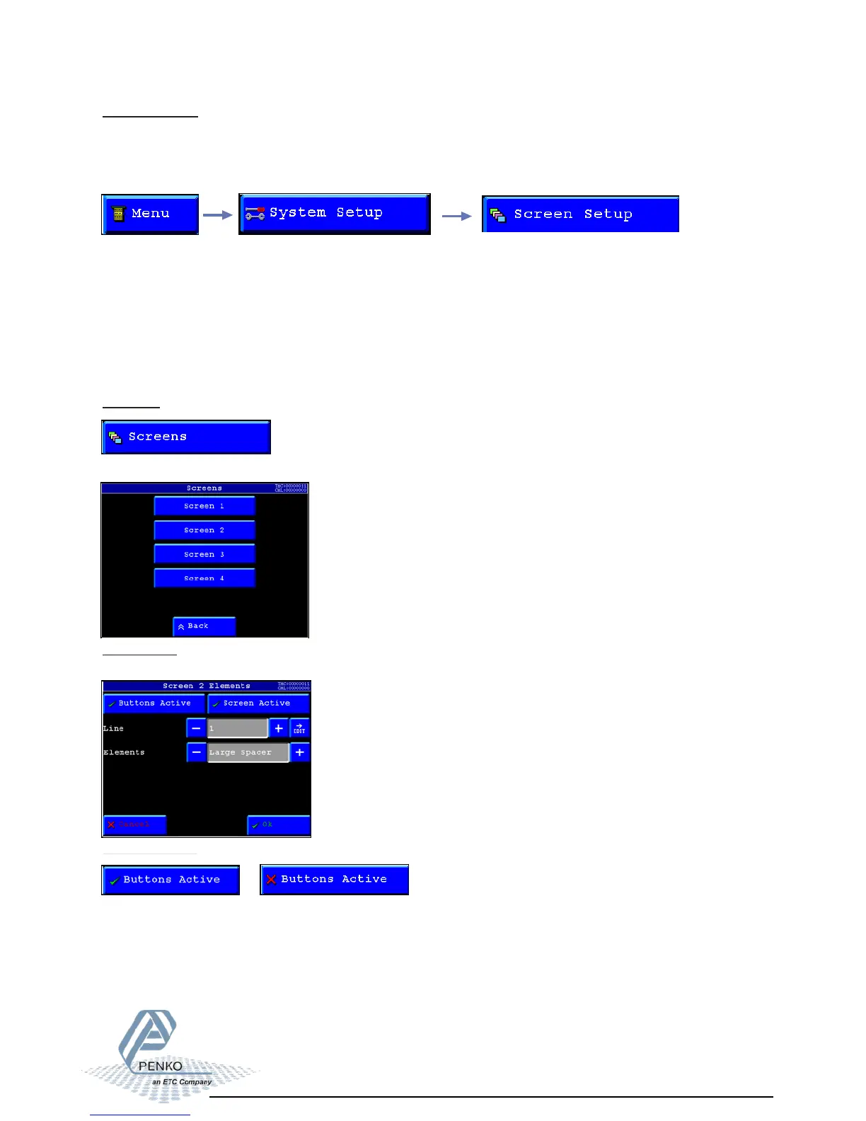 In this menu its possible to setup the four Main screens, operator buttons, screen