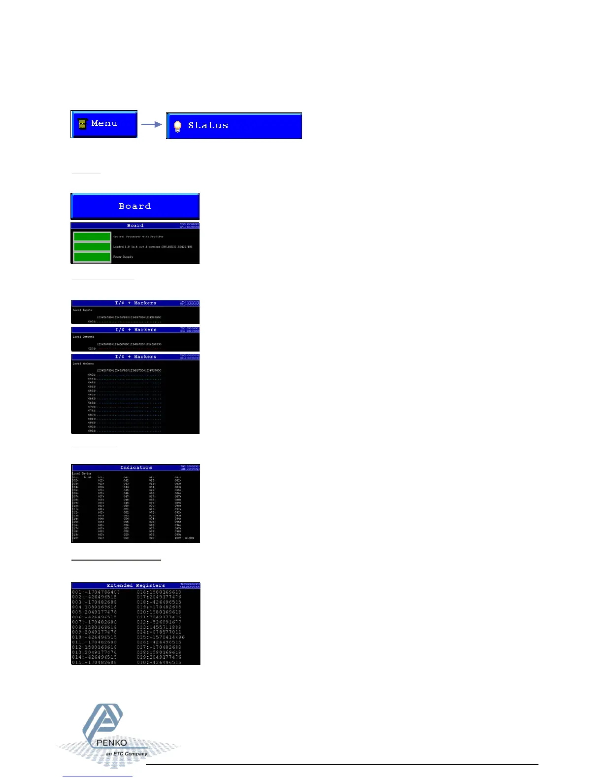 Its possible to show the status of the inputs, outputs and indicator scope..