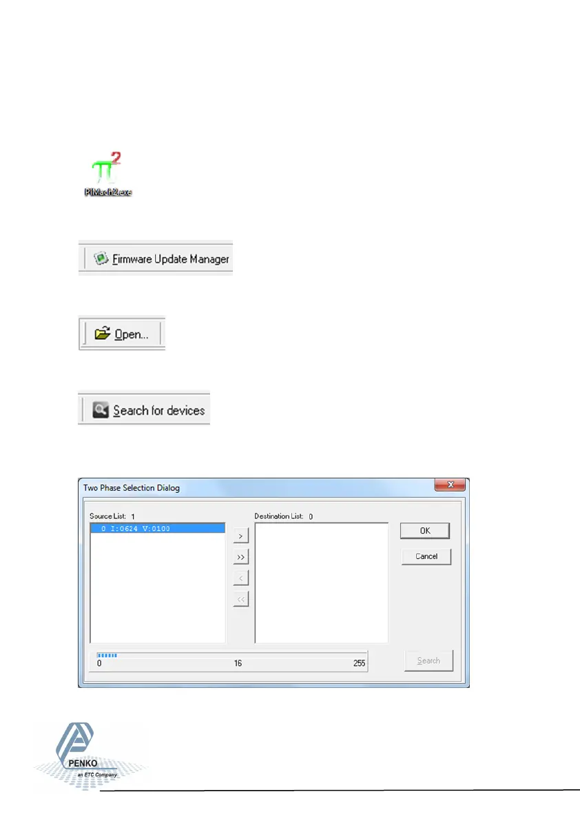 Connect the SGM to the computer through USB. Start PI Mach II. Set communi-