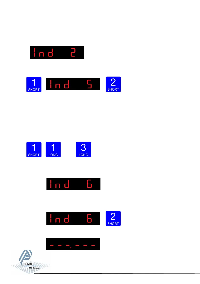 To set the Decimal point position, enter Ind 6 by pressing key 2 <2 sec.