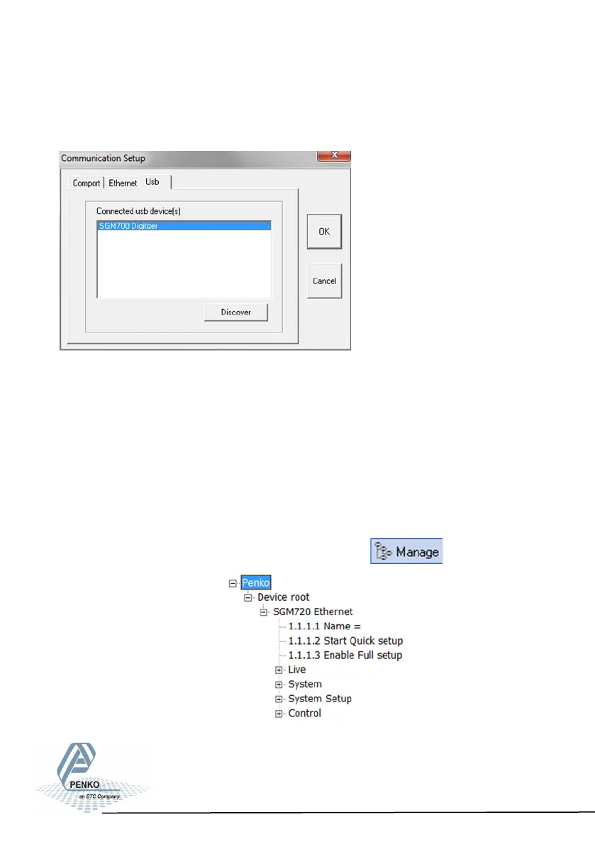 In the Usb tab sheet click Discover, select the SGM700 Digitizer and click OK.