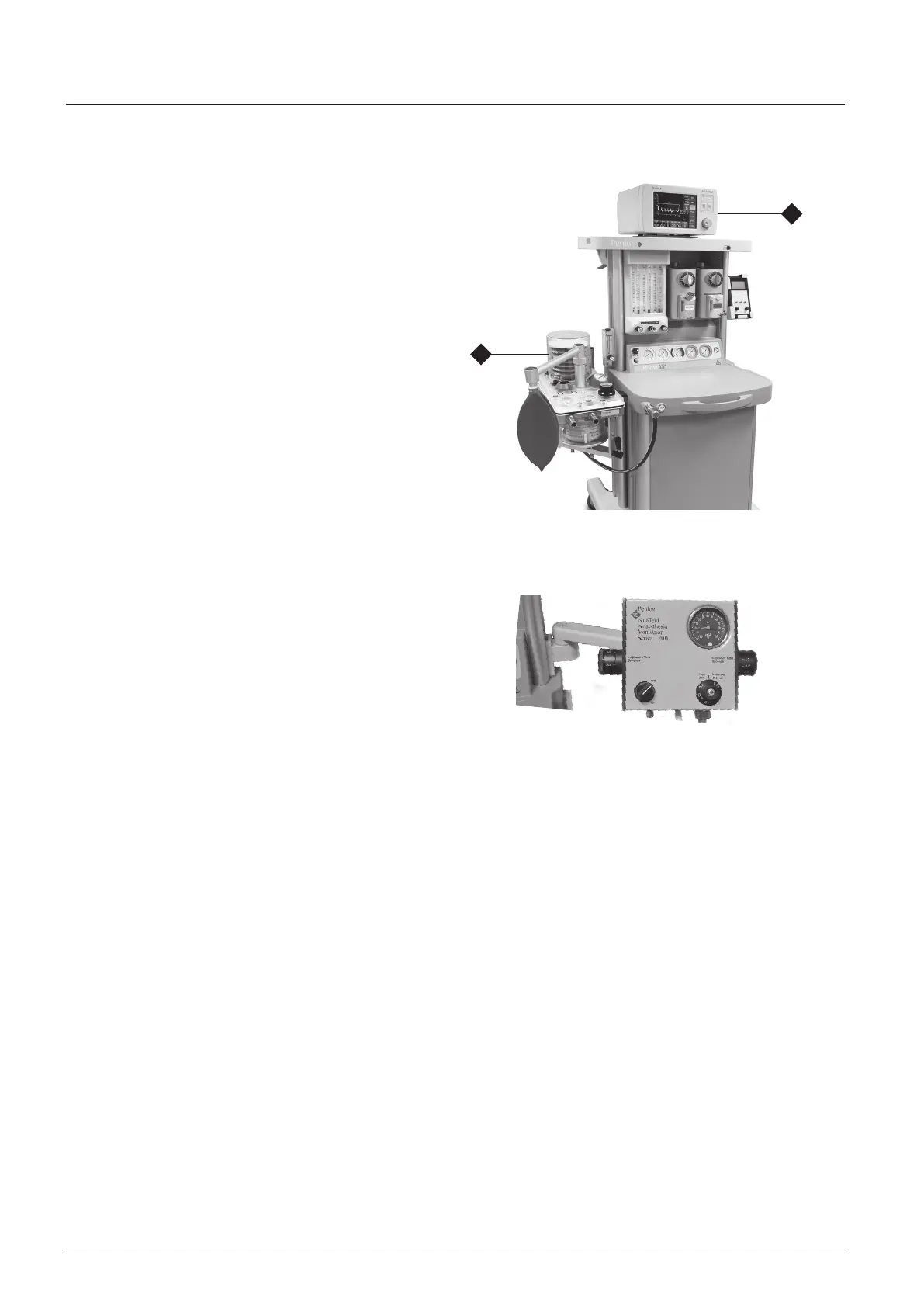 The Nuffield 200 MRI ventilator is mounted to the machine