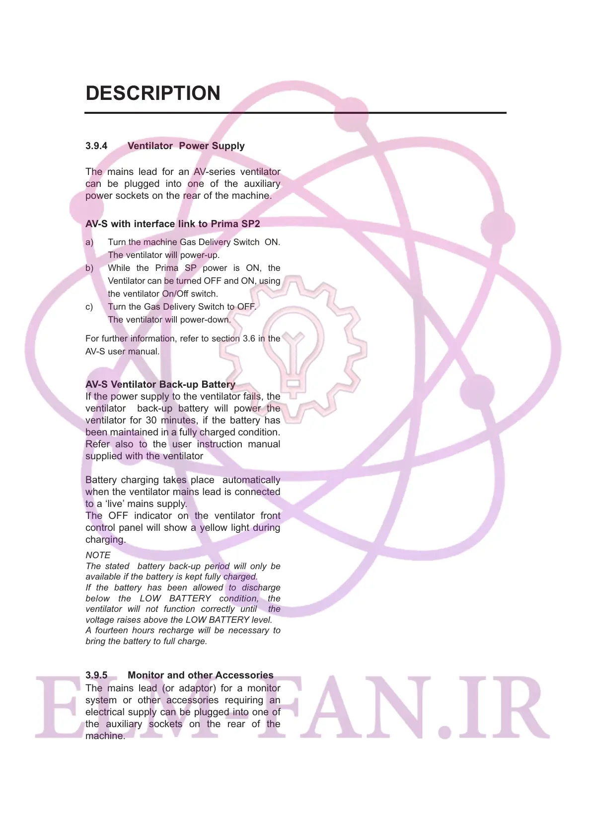 3.9.4 Ventilator Power Supply