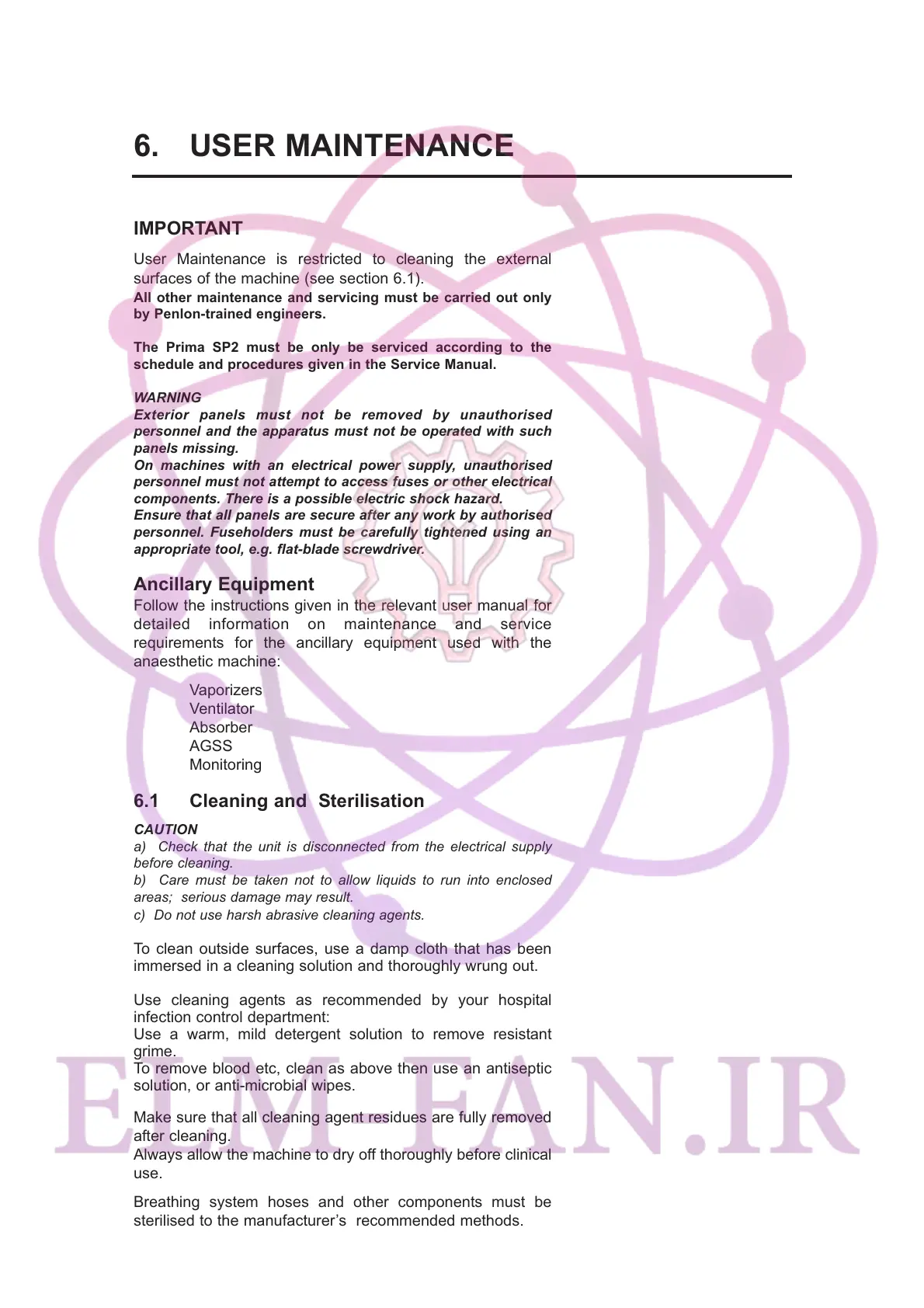 6.1 Cleaning and Sterilisation