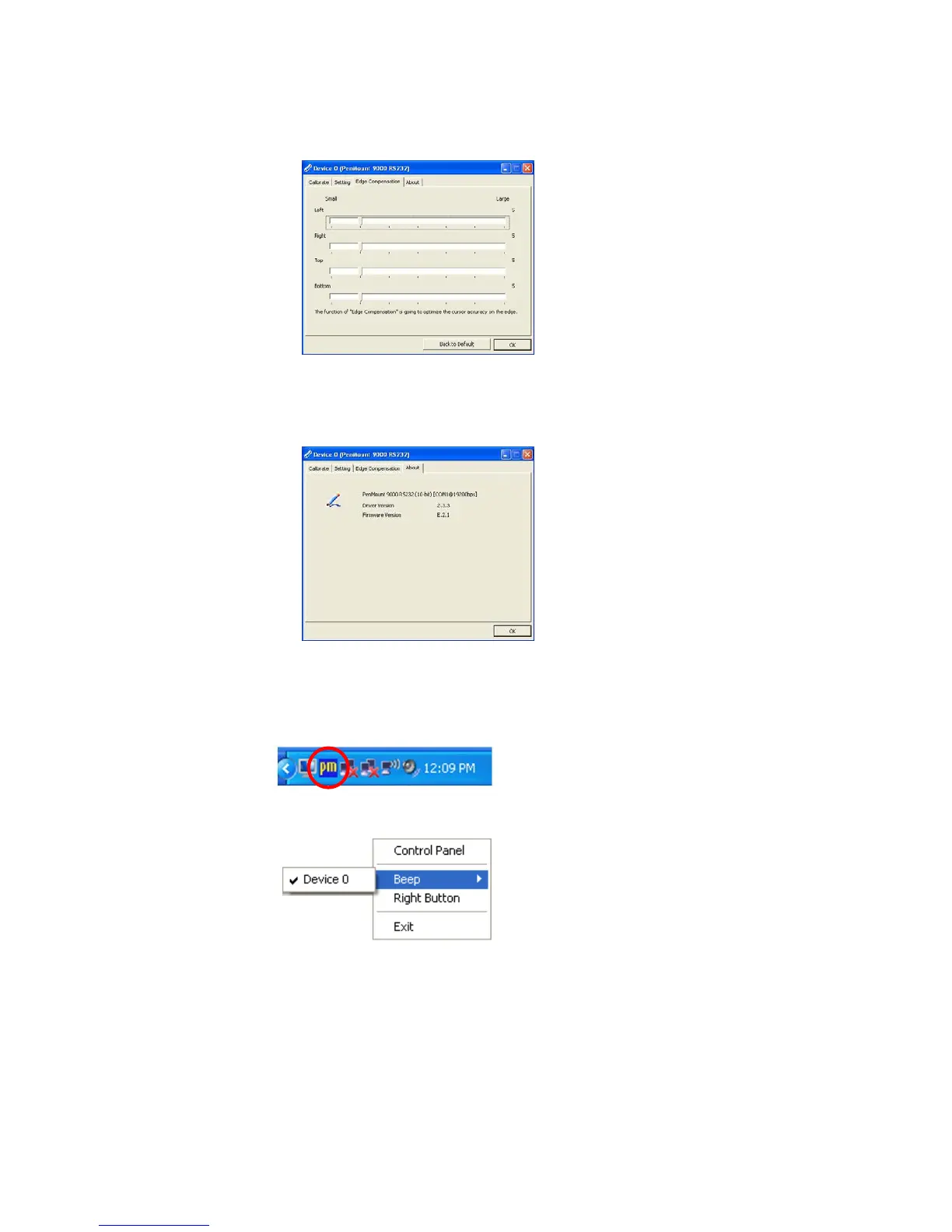 PenMount Monitor icon (PM) appears in the notification area of Windows