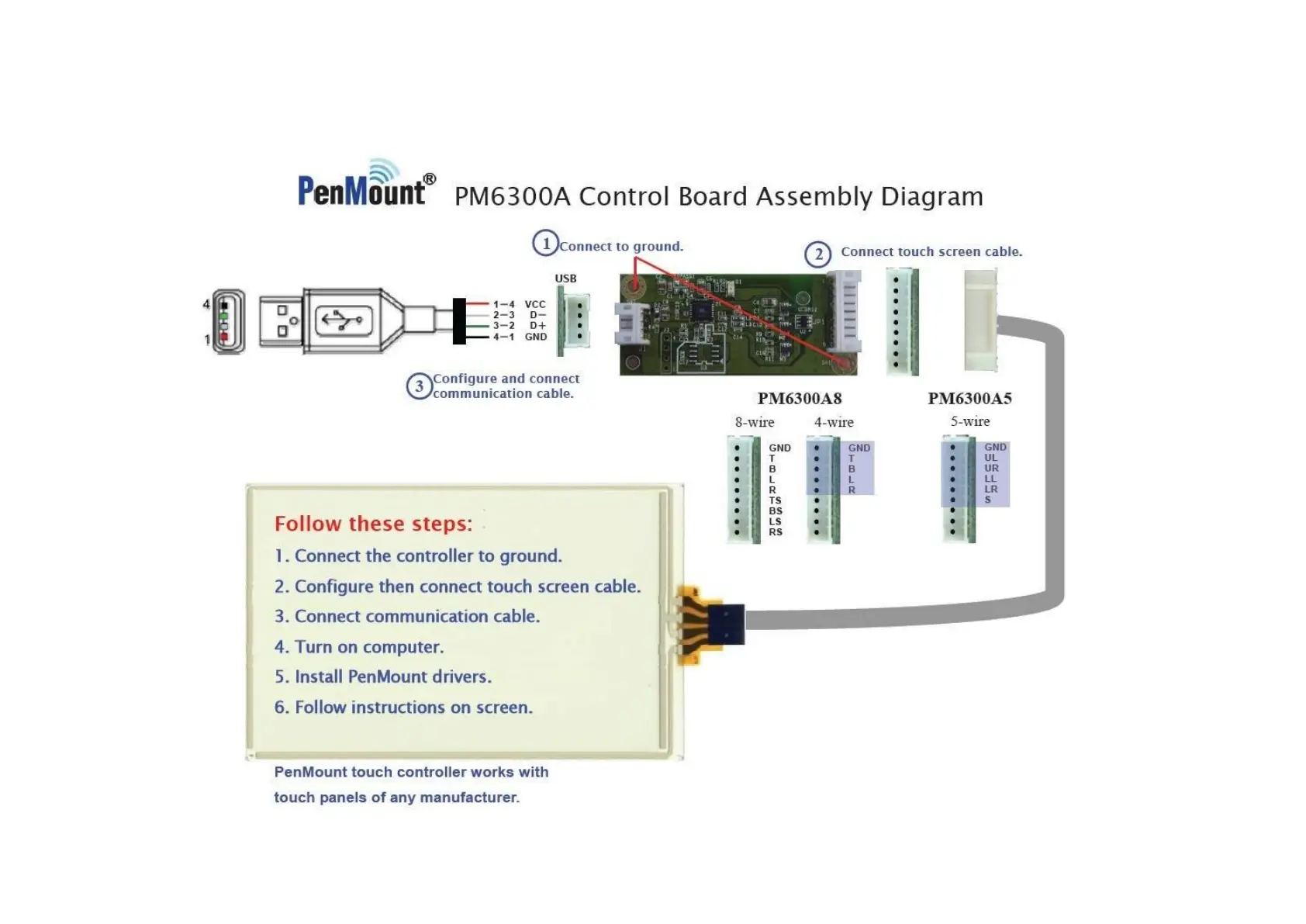 PenMount Touchscreen 6000 - The Connection of 6300 A Control Board (for USB Interface Only)